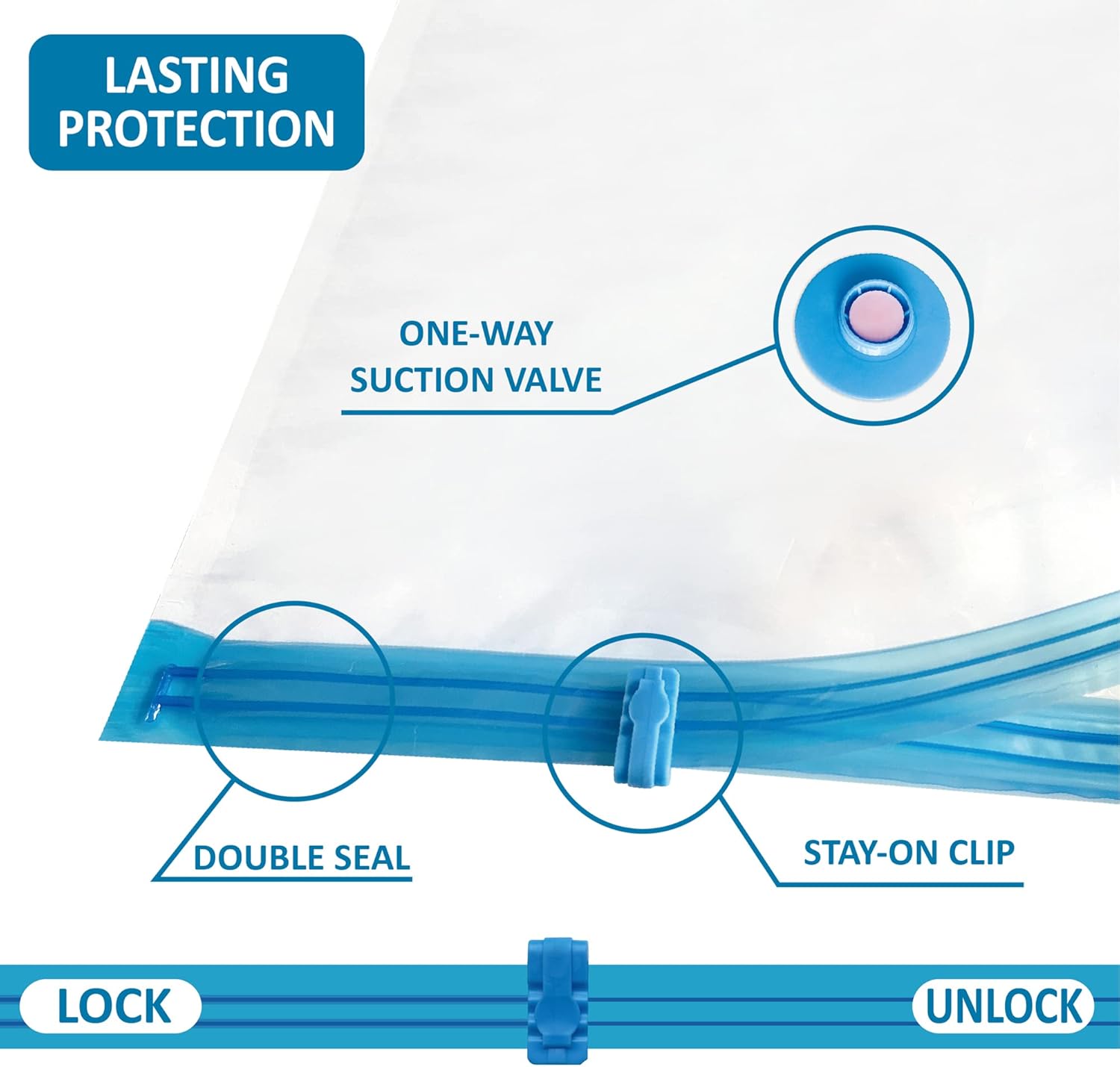 Airtight & Leak-Proof Seal: Designed with a strong double zip lock and high-quality air valve to ensure air stays out once compressed. Keeps your items protected for long-term storage.